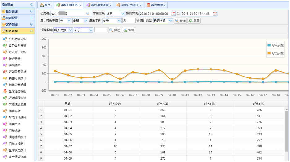 4、支持多层级查询通话录音、查看统计报表,进行KPI考核。